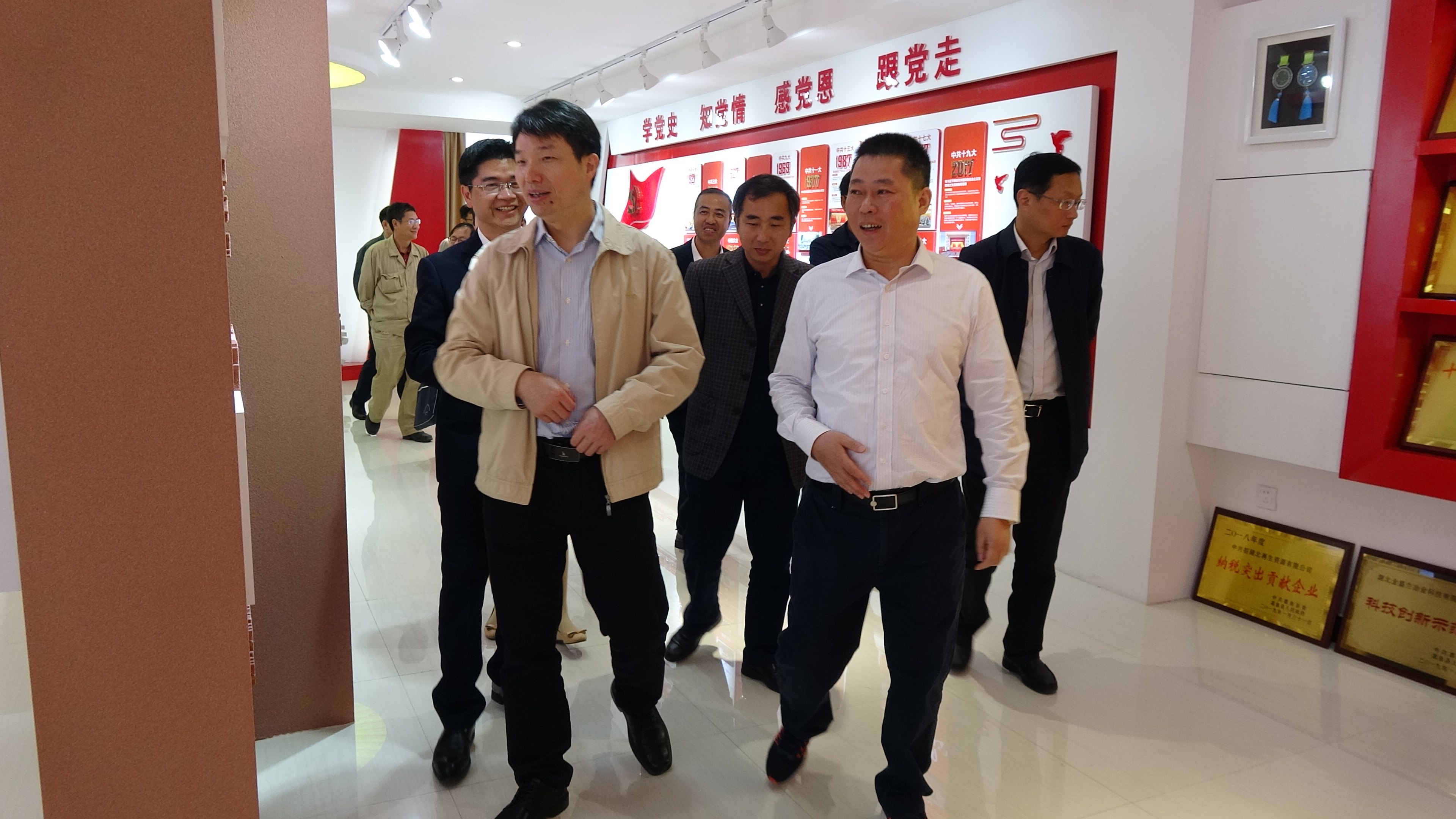 【概要描述】5月7日上午,咸寧市委常委、組織部部長(zhǎng)徐小兵帶領(lǐng)調(diào)研組蒞臨公司就非公企業(yè)黨建、“一抓五促”(即抓黨建,促項(xiàng)目建設(shè)、脫貧攻堅(jiān)、鄉(xiāng)村振興、基層治理、維護(hù)穩(wěn)定)等工作進(jìn)行調(diào)研。公司陳龍官董事長(zhǎng),黨委林云慶書記、蔣利銓副書記等領(lǐng)導(dǎo)陪同,并向調(diào)研組匯報(bào)了公司黨的建設(shè)及“一抓五促”工作。??調(diào)研組一行先后實(shí)地調(diào)研了公司黨建文化展示廳、職工文化活動(dòng)中心、生產(chǎn)車間等黨建工作,并與公司領(lǐng)導(dǎo)進(jìn)行了交流座談。?????