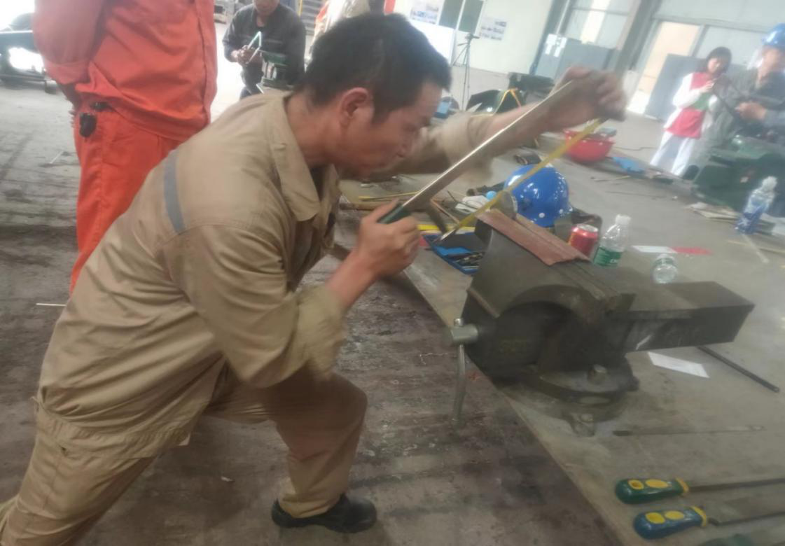 本次比武活動(dòng)既有安全理論知識(shí)也有實(shí)操技能的考試。考察員工的安全理念和員工的操作能力。整個(gè)實(shí)操考試流程包括畫線、鋸、搓、打孔、磨等工序,精度就是技術(shù),小工件體現(xiàn)了大工匠精神。