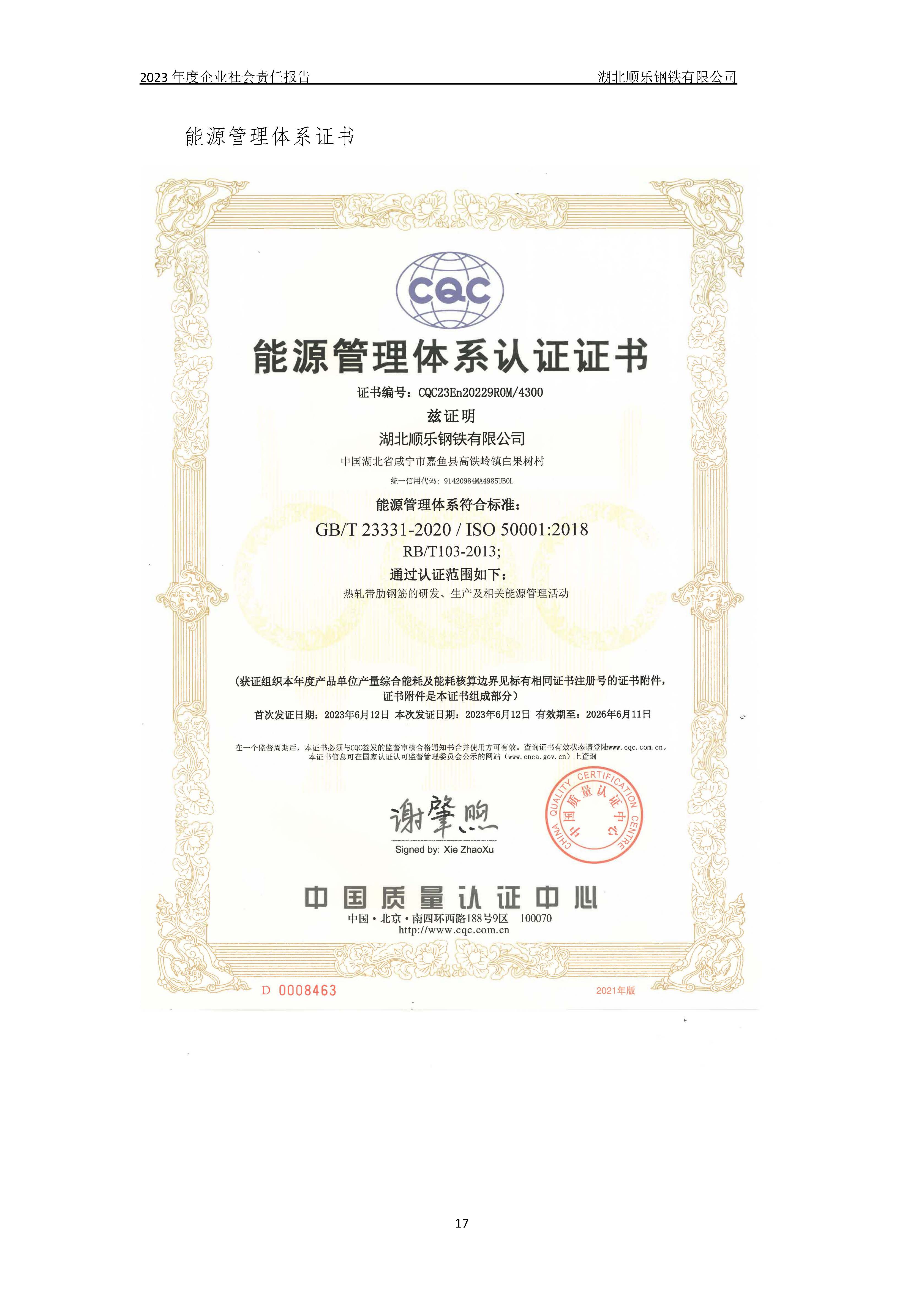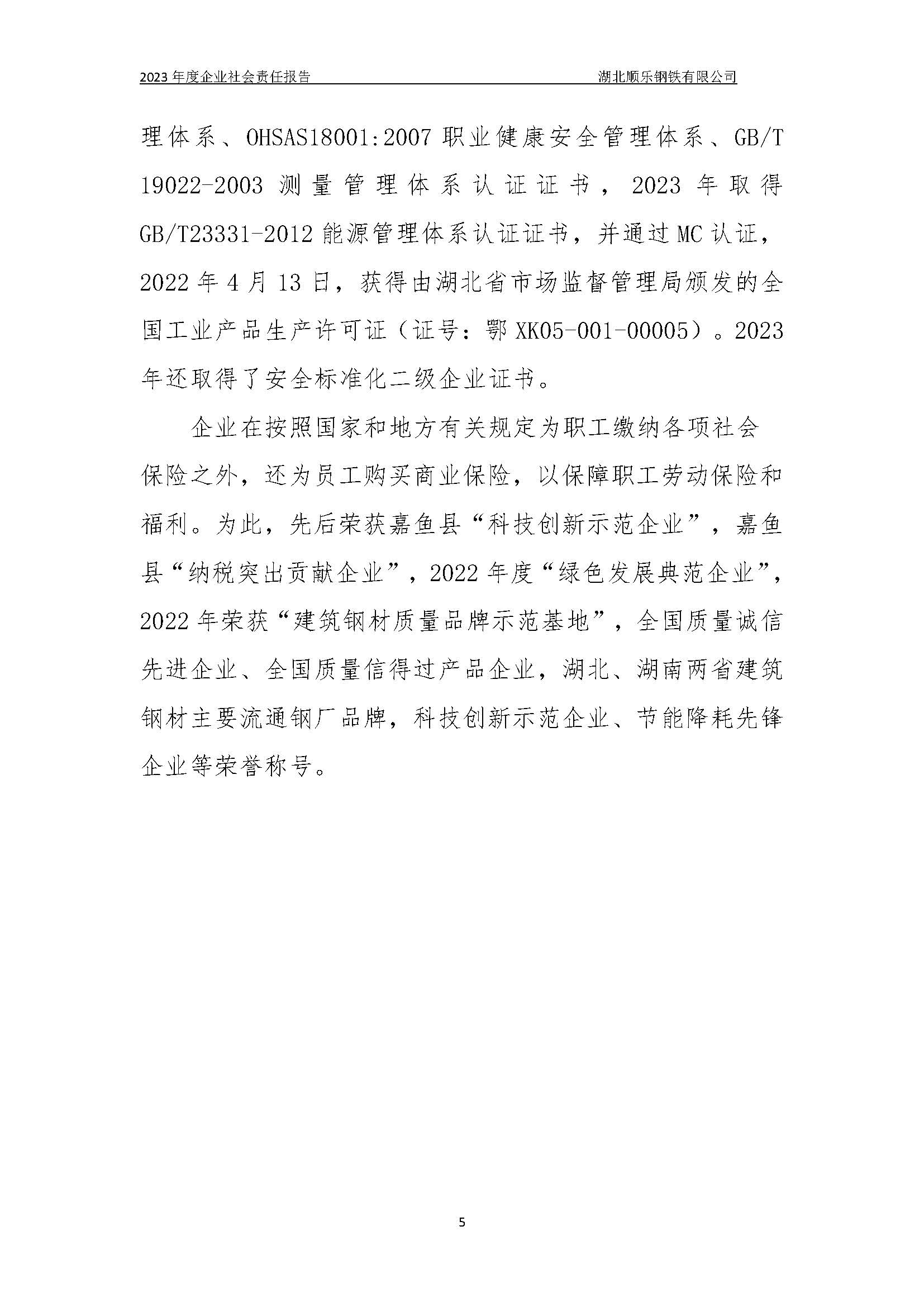 湖北順樂鋼鐵有限公司2023年度企業(yè)社會(huì)責(zé)任報(bào)告